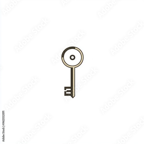 Outline of a golden key, isolated on white. Symbol for unlocking and access