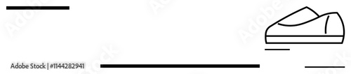 Outline of a shoe positioned alongside various horizontal lines in minimalist black and white style. Ideal for design concepts, fashion illustration, modern art, visual storytelling, graphic design