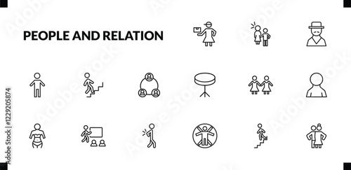outline people and relation icons set. editable linear sexual harassment, spanish man, small boy, and other 12 icons in this category isolated on transparent background.