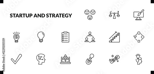 outline startup and strategy icons set. editable linear decision, web de, entrepreneur, and other 12 icons in this category isolated on transparent background.