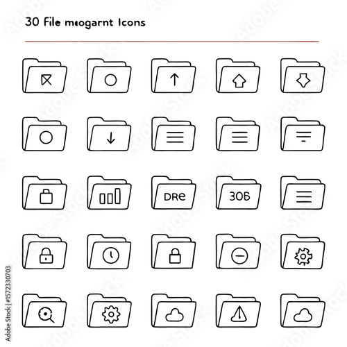Outline style file folder icons showing various symbols and signs in a organized grid of thirty items