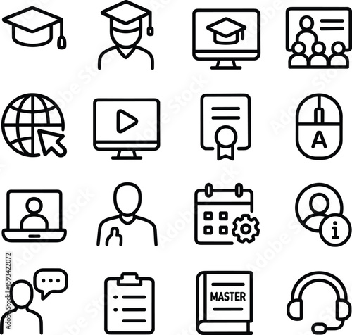 Outline Thin Line Education Element Icon Set Design