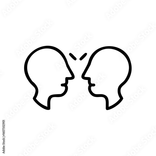 Outline two heads facing each other in conversation face dialogue