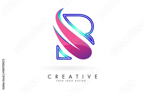 Outline Vector illustration of abstract letter B with colorful flames and gradient Swoosh design. Letter B logo with creative cut and shape.