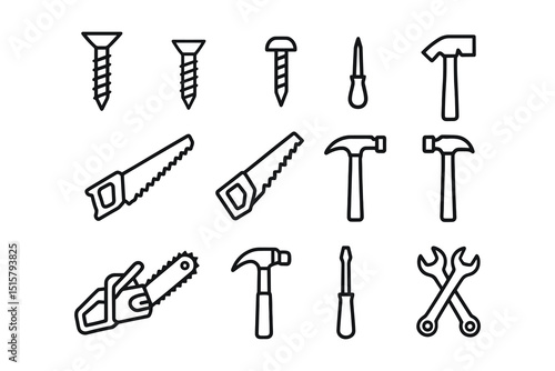 Outline Vector Illustration of Carpentry Tools Set for DIY Projects and Home Repair