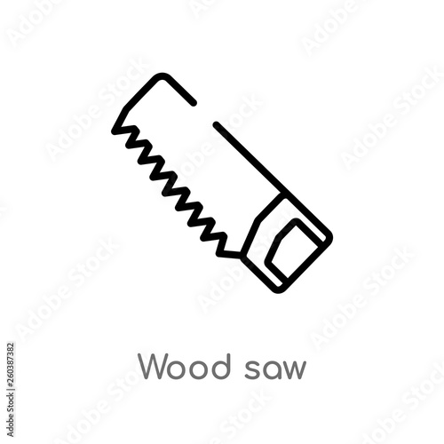 outline wood saw vector icon. isolated black simple line element illustration from construction concept. editable vector stroke wood saw icon on white background
