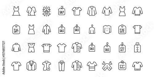 Outlined Icons of Clothing Apparel with Sale Tags on Transparent Background