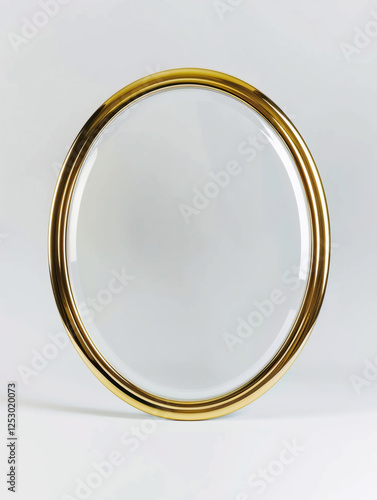 Oval Brass Frame with Glass on White Background, Photorealistic
