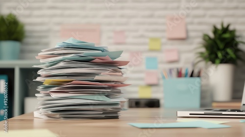 Overdue utility bills piling up on a desk, feeling of anxiety, 3D illustration