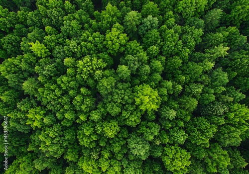 Overhead shot of a green forest, showcasing the intricate details of the tree canopy.