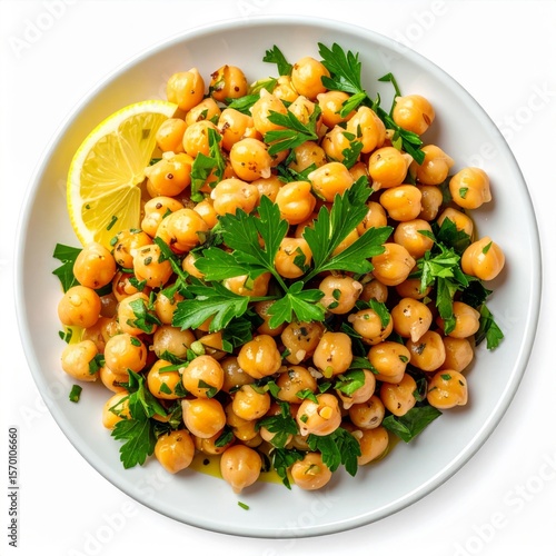 Overhead Shot of Chickpea Salad with Parsley and Lemon