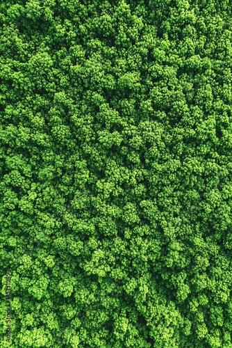 Overhead view of a vibrant, dense green canopy creating an organic pattern