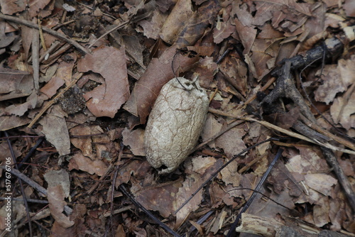 Overhead view of an old Cicada cocoon or shell on the forest floor