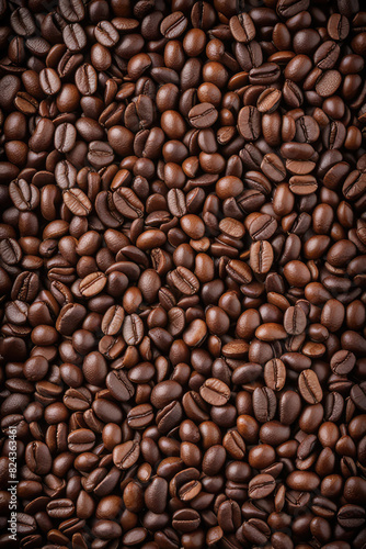 Overhead view of backdrop representing halves of dark brown coffee beans with pleasant scent