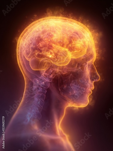 Overheated Brain Symbol Glows Brightly Inside a Human Head Surrounded by Soft Gradients and Vivid Colors