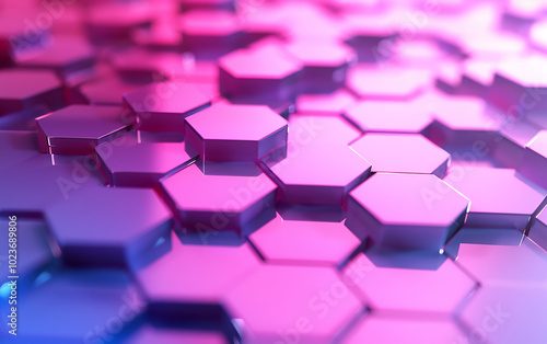 Overlapping hexagons in blue to purple gradients, create a stylish background. Generative AI