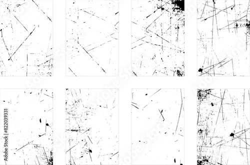 Overlay textures set stamp with grunge effect. Set of different distressed black grain textures. Distress overlay vector textures.