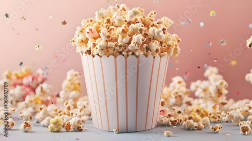 Oversized Popcorn Bucket Surrounded by Colorful Confetti