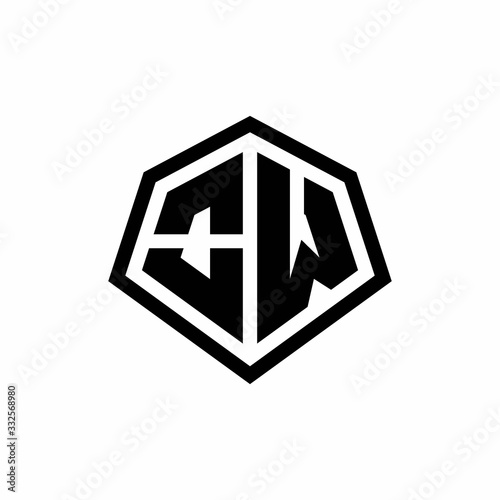 OW monogram logo with hexagon shape and line rounded style design template