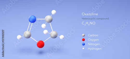 oxazoline molecule, molecular structure, heterocyclic compound 3d model, Structural Chemical Formula and Atoms with Color Coding