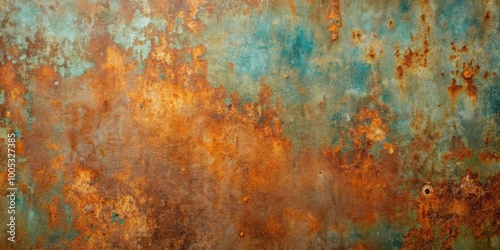 Oxidated metal surface texture with rustic patina, rust, aged, corroded, weathered, vintage, metallic, oxidation, decay