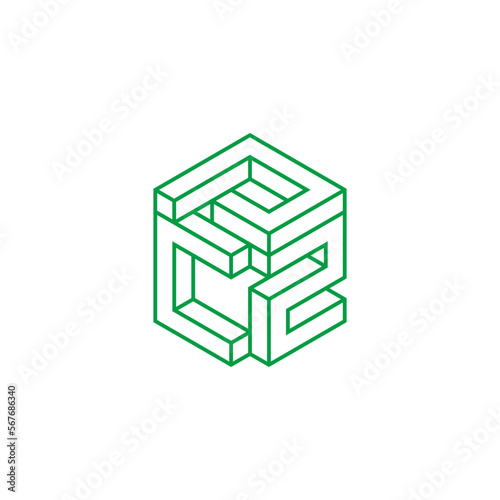 P C 2 Letter Cube Hexagon Logo Design Vector