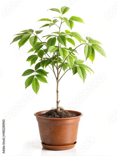 Pachira aquatica or Money Tree in a pot, isolated on white background