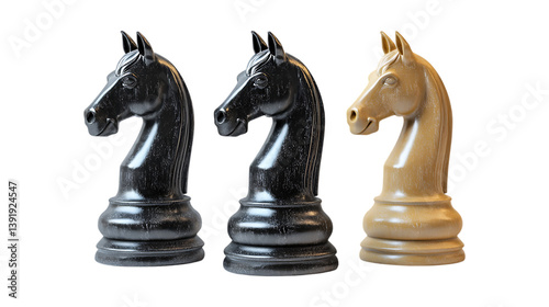 Pack of Horse Chess Piece set of Three Different Poses set Against Transparent Background for Game Branding, Chess Promotion, or Art Design Projects