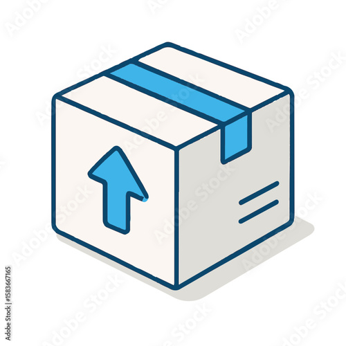 Package delivery shows isometric carton with arrow up, transparent background. Package delivery, indicated by directional arrows, represents goods transported via logistical networks.