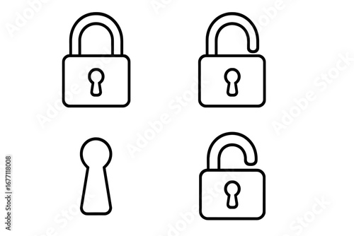 Padlock and Lock Icon Set with Thin Editable Strokes, Secure Security Symbols Collection for Websites, Apps, Books, Digital Design, Vector Illustration Transparent Background