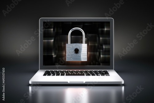 Padlock on laptop screen, concept of data security, privacy and antivirus. Generative AI