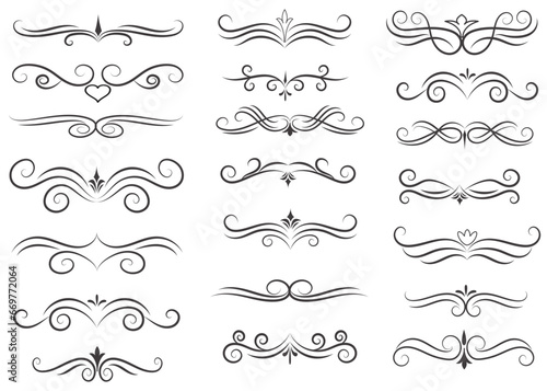 Page Divider And Design Elements. Set of Various Simple Black Divider Design, Assorted Divider Collection Template Vector. Collection of floral dividers elements mega decoration for Calligraphy.