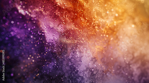 Paint an ethereal watercolor with fluid textures in purple, orange, ochre, and gold, creating a calming atmosphere