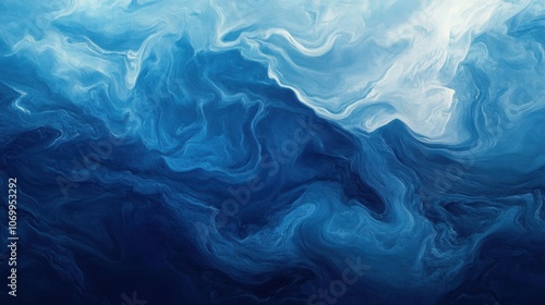Painted abstract backdrop with swirling ocean blues, acrylic brushwork creating wave patterns, ideal for modern wall art and fine art decoration