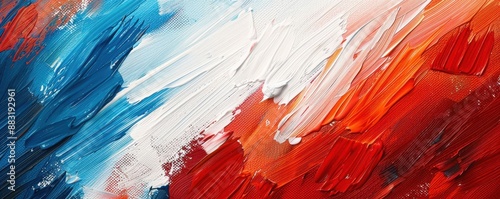 Painterly background with bold red, white, and blue brushstrokes, showcasing the texture and flow of the brush