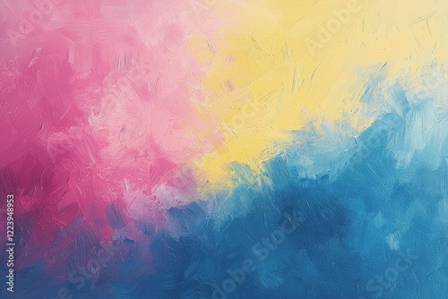 Painting featuring a bright blue and yellow abstract background with vibrant colors and dynamic shapes creating a visually engaging composition for art enthusiasts