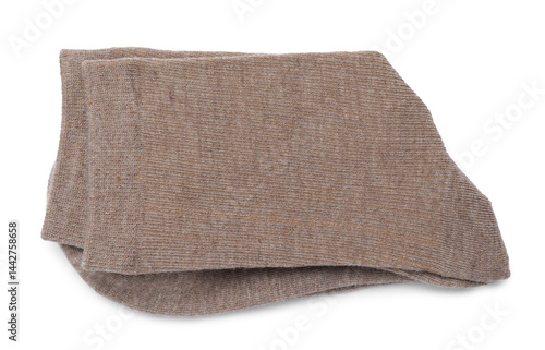 Pair of brown socks isolated on white, top view