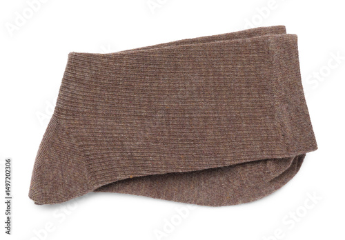 Pair of brown socks isolated on white, top view