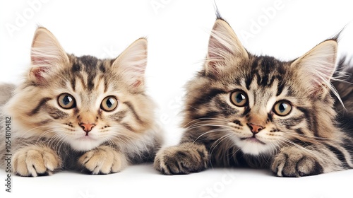 Pair of Fluffy Maine Coon Cats Relaxing Side by Side with Playful Expressions : Generative AI