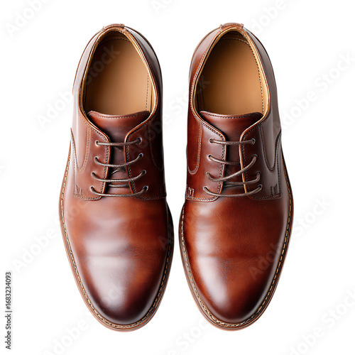 Pair of polished brown leather derby shoes, men's fashion footwear.