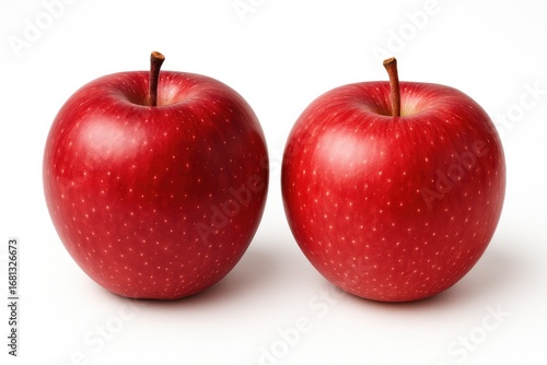 Pair of red apples set against a white background