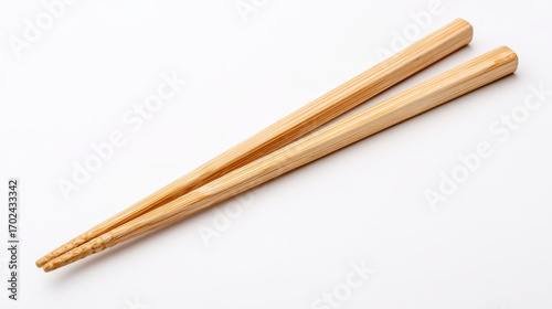 Pair of simple wooden chopsticks isolated neatly on a white background