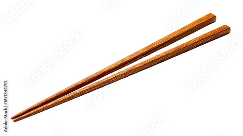 Pair of straight wooden chopsticks with tapered tips, fine grain texture visible, arranged neatly in parallel, isolated on transparent background.