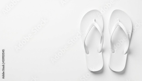 Pair of white flip-flops, studio shot on white background , minimalist, footwear product