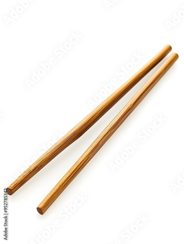 Pair of Wooden Chopsticks Isolated on Minimalist White Background with High Key Lighting and Crisp Details