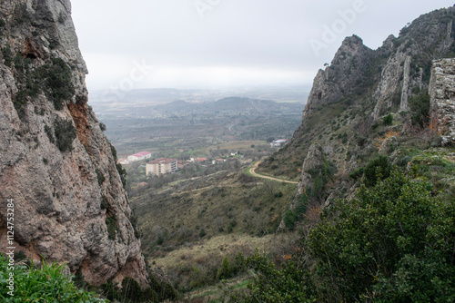 Paisaje de montaña de caliza con caminos un día nublado de Poza de la Sal, Burgos