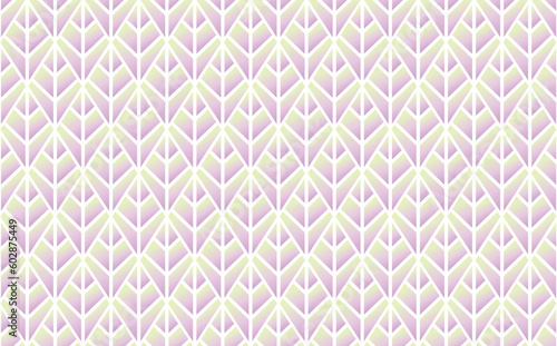Pale green and purple gradient colored rhombus vector tiled pattern shaped like leaves. Colorful colored pattern. Suitable for fabric, textiles, and wallpaper.