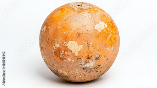 Pale Orange Round Fruit with Textured Surface and Spots on White Background