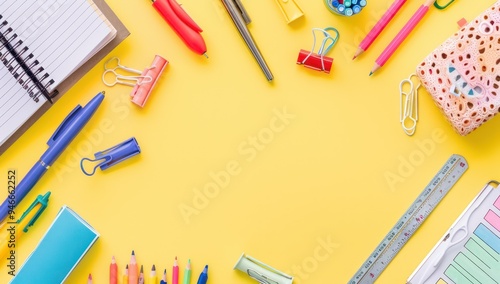 Pale yellow background with colorful stationery, ideal for bright and cheerful educational content