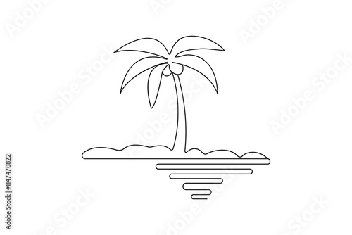 Palm tree continuous one line drawing and simple isolated outline vector design